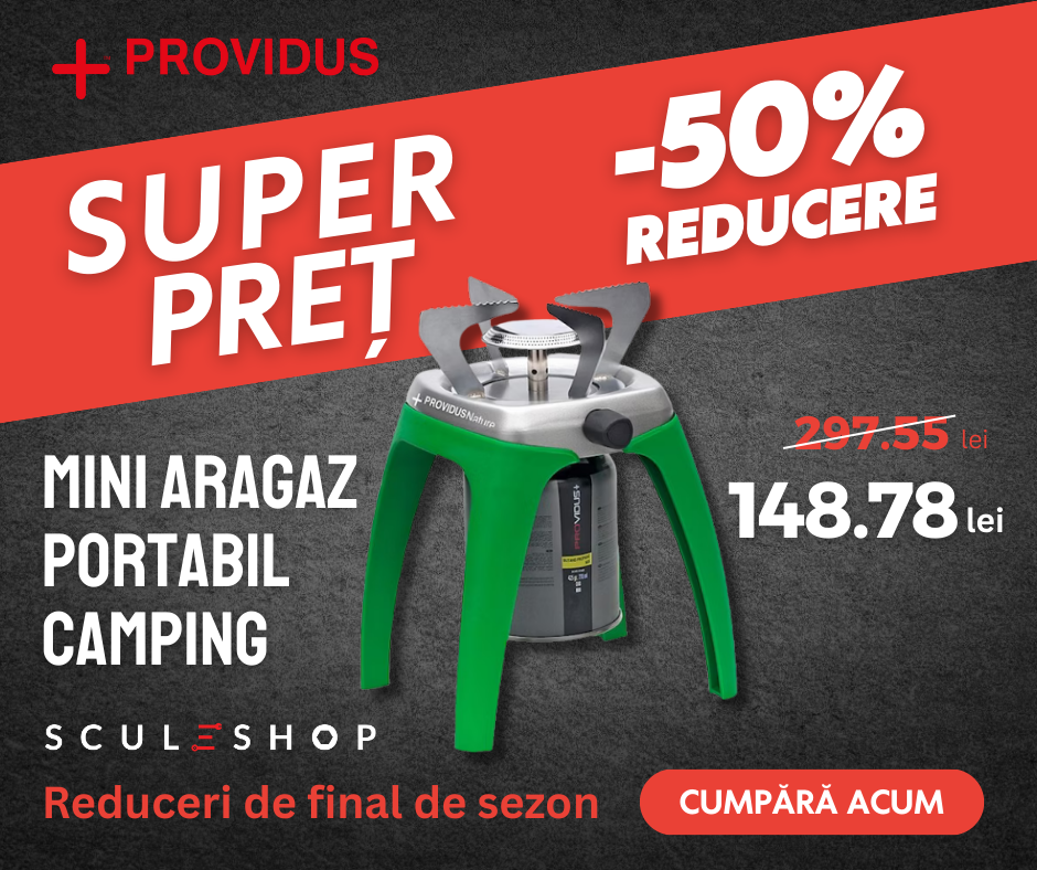Mini aragaz portabil camping PROVIDUS 4 picioare, 1 ochi de ardere cu valva de 7/16"
