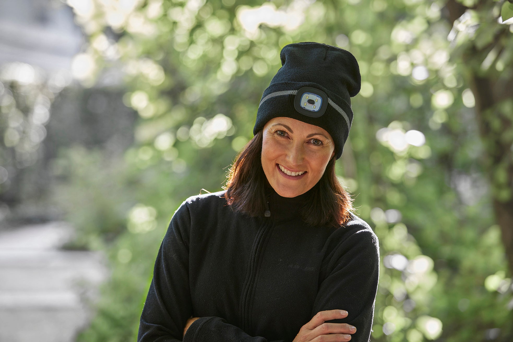 Fabricat din poliacril calduros, acest fes ofera protectie impotriva frigului, in timp ce banda reflectorizanta si LED-ul frontal reincarcabil asigura siguranta in zone slab iluminate. Lampa LED detasabila, cu patru niveluri de intensitate, are o autonomie de pana la 60 de minute si se incarca usor prin USB.