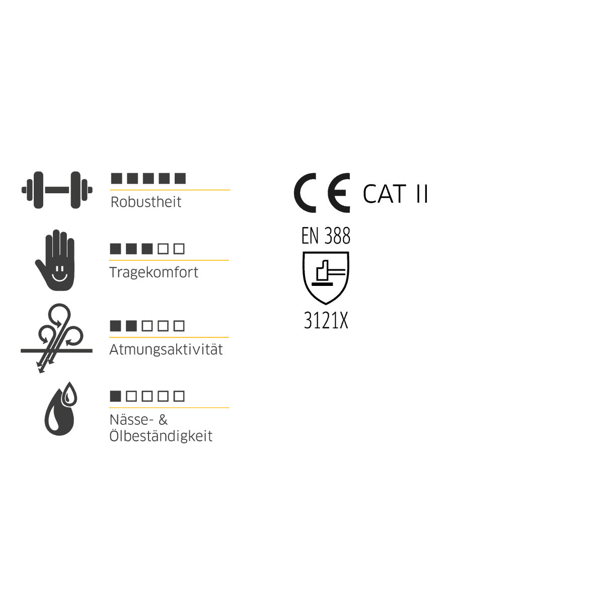 Manusile de protectie "WORKER PRO" de la GEBOL sunt concepute pentru a face fata celor mai dure conditii de lucru, fiind ideale pentru activitati grele. Aceste manusi robuste sunt realizate din piele de bovina de calitate premium, cu o grosime de aproximativ 1,2 mm, oferind o rezistenta exceptionala. Cusaturile duble asigura o durabilitate sporita, iar palma captusita adauga un plus de confort. Manseta de 8 cm, gumată, protejeaza artera mainii, oferind siguranta suplimentara in timpul lucrului.