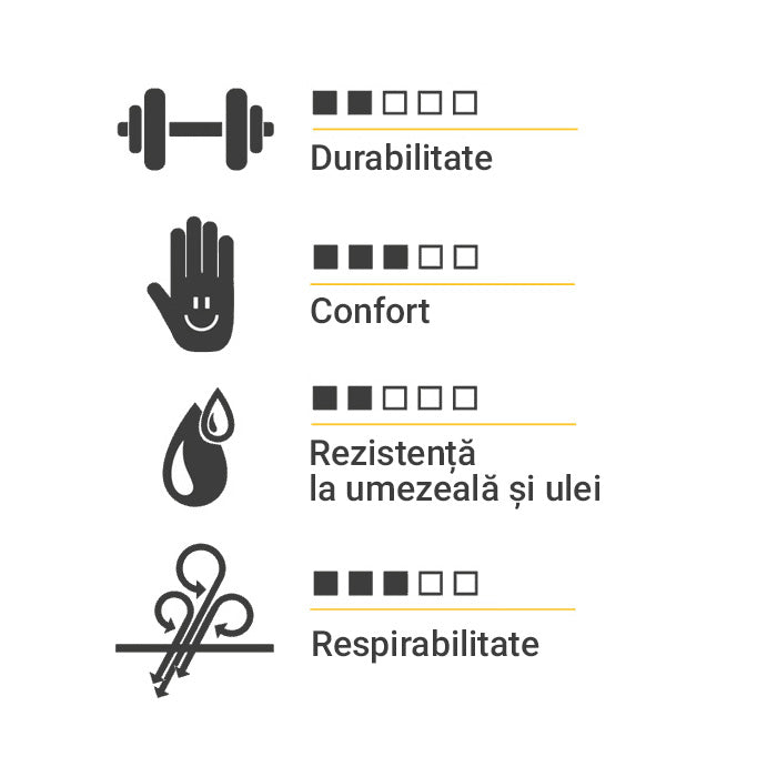 - Riscurilor mecanice: Conform standardului EN 388, ofera protectie impotriva riscurilor mecanice.
