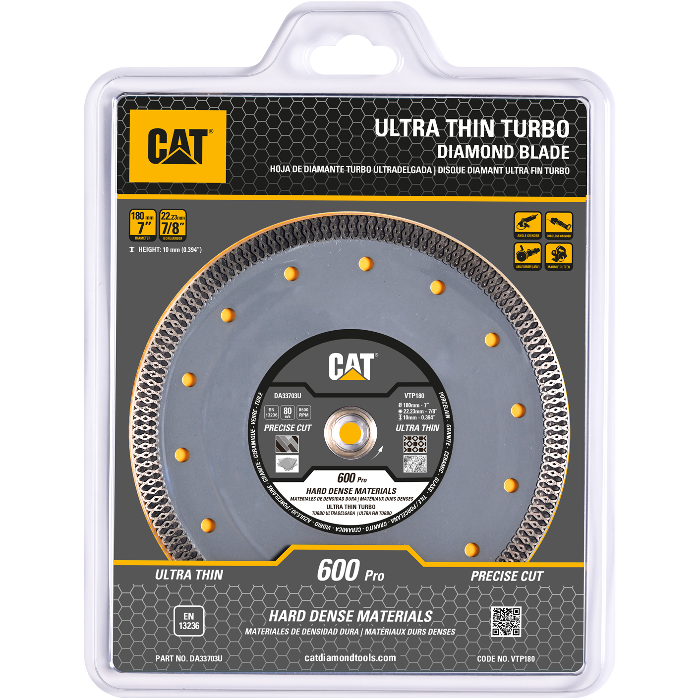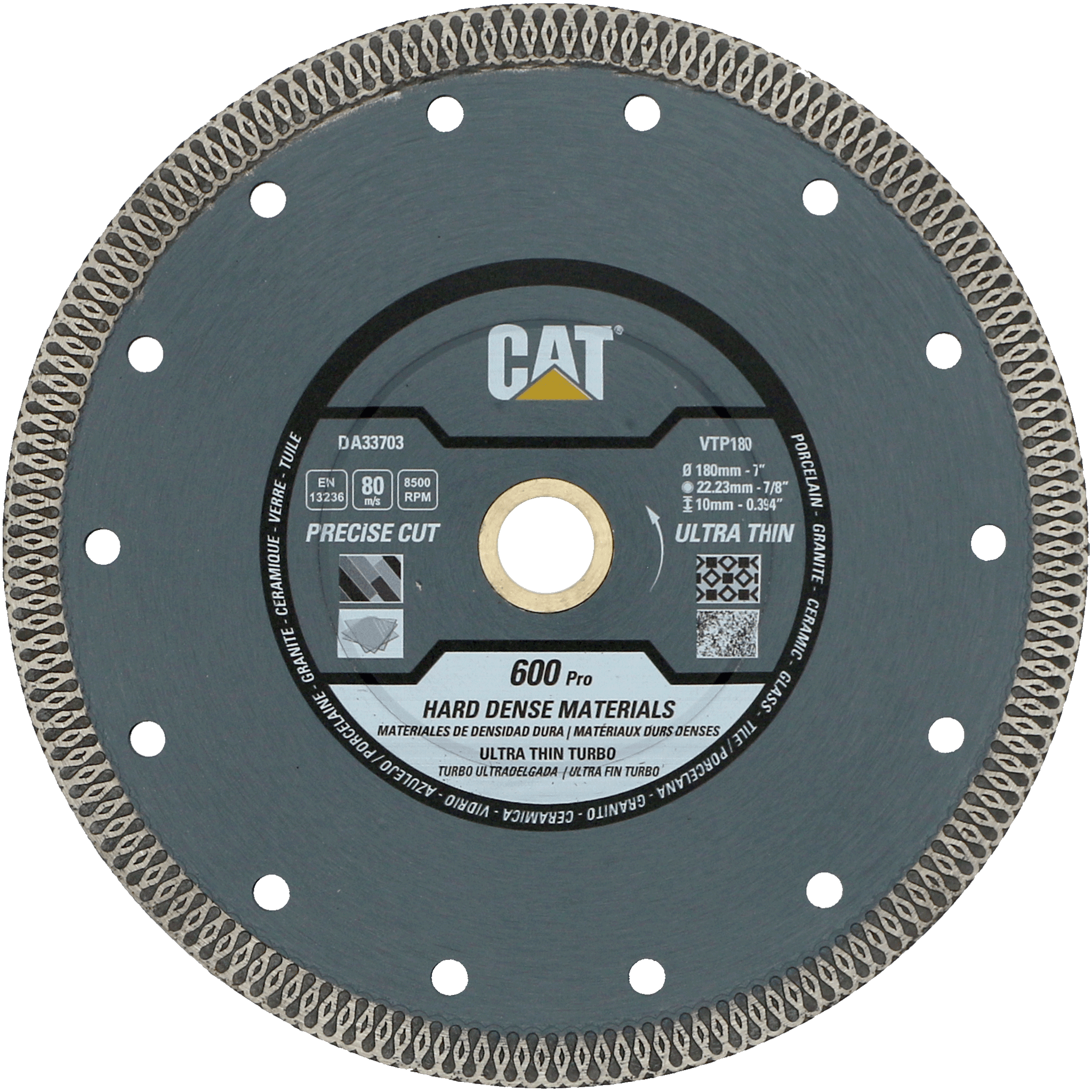 Discul diamantat Cat 600 Pro CORE este special conceput pentru taierea precisa, rapida si fara ciobituri a materialelor dure si dense, inclusiv portelan, piatra artificiala inginerita, granit, cuartit, placi ceramice, gresie portelanata (cuart), teracota, travertin, porfir, bazalt, marmura. Designul sau inovator, cu margine unica Turbo Mesh, permite racirea optima a discului prin transportul agentului de racire in timpul taierii, reducand frictiunea laterala si prelungind durata de viata a produsului.