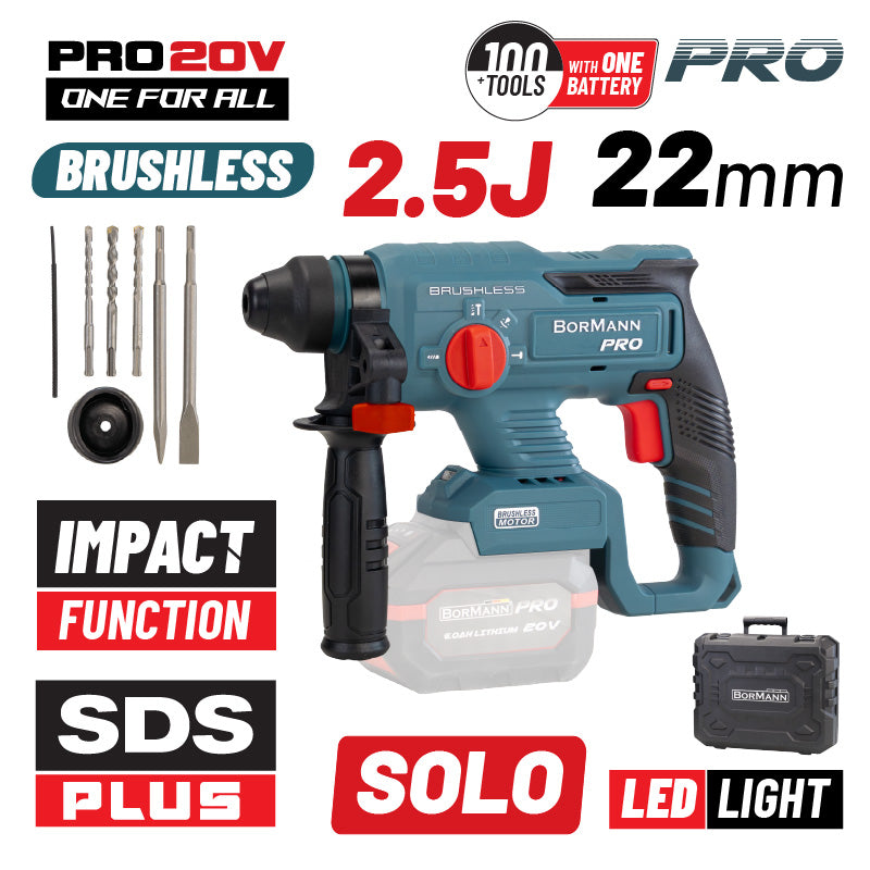 Ciocan rotopercutor sds plus Bormann PRO 20V,li-ion, 2.0 j, fara acu. si incarcator (fara perii), Mdel BBP5300