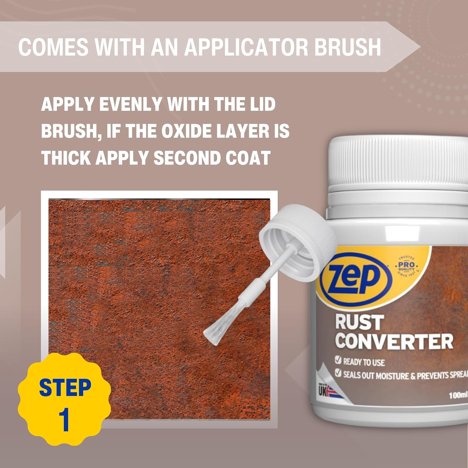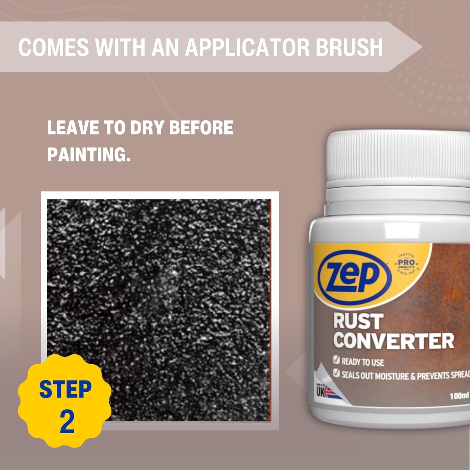 Convertor de rugina pe baza de acid tanic si copolimer acrilic, formulat special pentru neutralizarea procesului de coroziune. Solutia patrunde in stratul de rugina, il stabilizeaza chimic si formeaza o pelicula protectoare de culoare neagra, durabila si pregatita pentru vopsire. Ideal pentru suprafetele metalice afectate de rugina care urmeaza sa fie reconditionate.