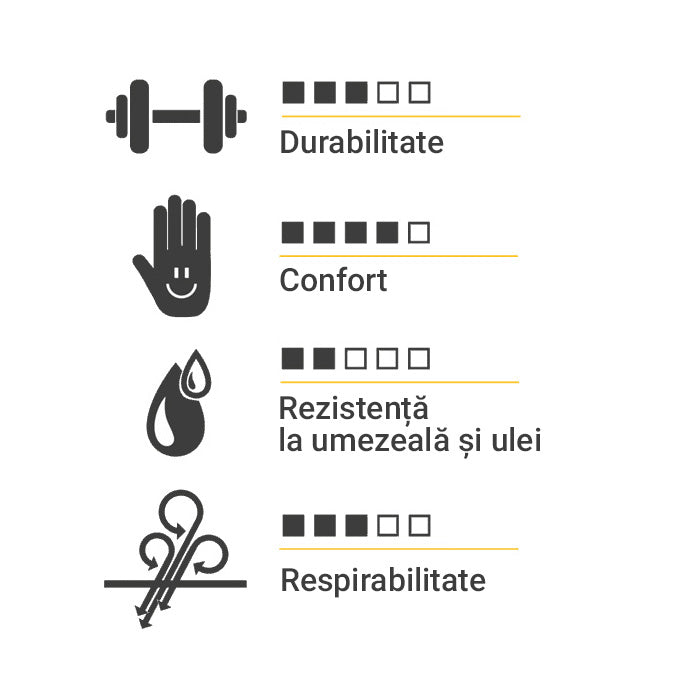 - Riscurilor mecanice: Conform standardului EN 388, ofera protectie impotriva riscurilor mecanice.