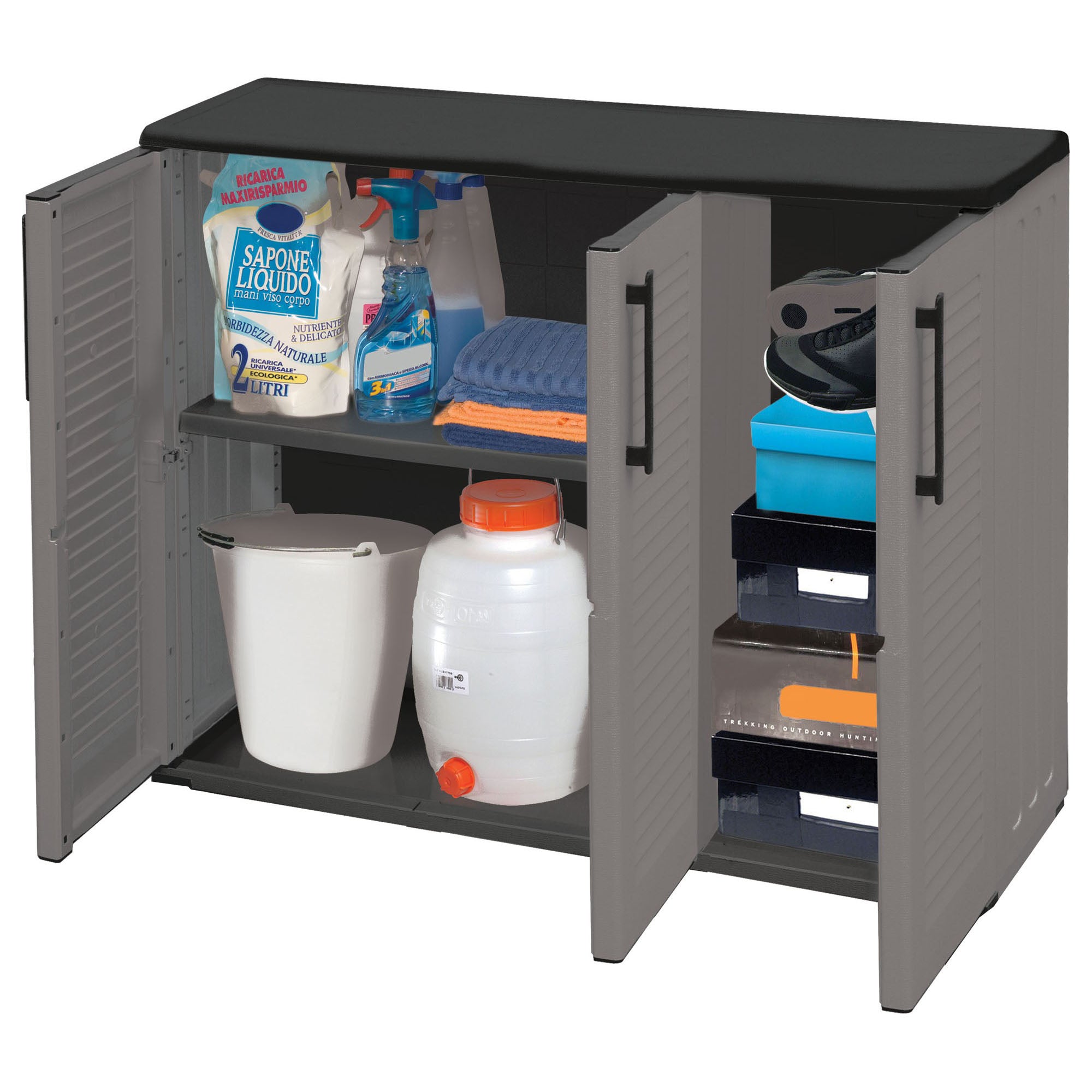 Dulap cu inaltime redusa din polipropelina, materiale reciclabila si eco, este echipat cu balamale de otel si rafturi reglabile 1020x370x840mm ArtPlast